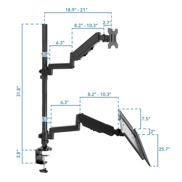 Easily mount a monitor up to 32″ in either portrait or landscape orientation. The spacious 25.7″ x 9.5″ keyboard tray includes a padded wrist rest to reduce strain during long work sessions. Built-in cable management keeps your workspace clean and organized. The gas spring system enables effortless adjustments with 35° tilt, 180° swivel, and full 360° rotation for the best viewing angles. Installs securely using either a clamp or grommet mount on your desk.